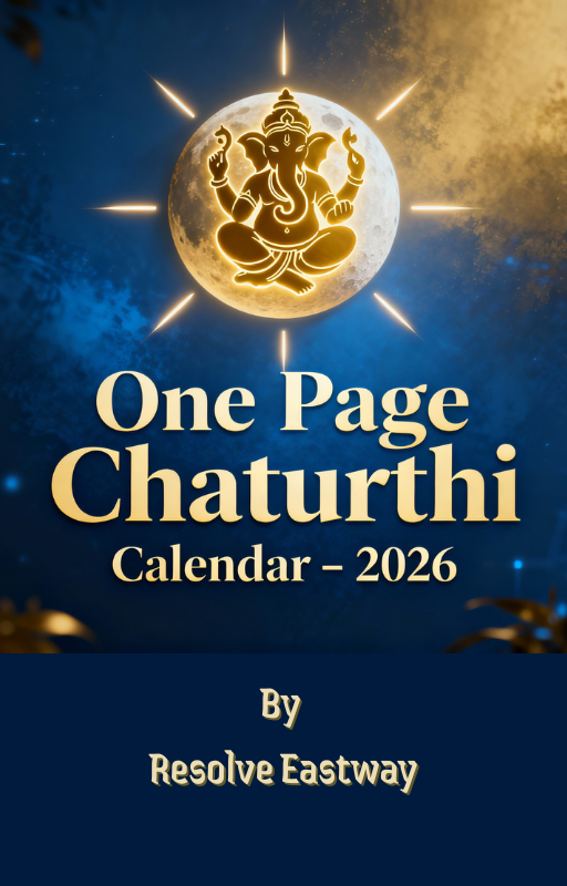 One Page Chathurthi Calendar – 2026 by ResolveEastway is a compact spiritual guide that lists all Chathurthi tithis for both Shukla Paksha and Krishna Paksha throughout 2026 with precise timings. Presented in a clear, single-page format, it helps devotees easily plan Ganapathi worship, Chathurthi fasts, and related spiritual observances across the year. The calendar is intended for spiritual and educational use.